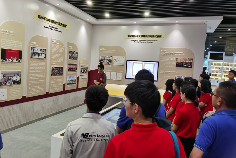 讨论结束后,两校师生结伴参观综合服务大厅、乘坐校园巴士穿梭荔园,欣赏校园风光。在图书馆工作人员及学生讲解员的介绍下,深入了解丽湖校区的先进配置,体会智能机器给图书整理工作带来的便利。在校史馆讲解员的带领下,深入了解深大的历史与文化。交流在热烈友好的氛围中结束。