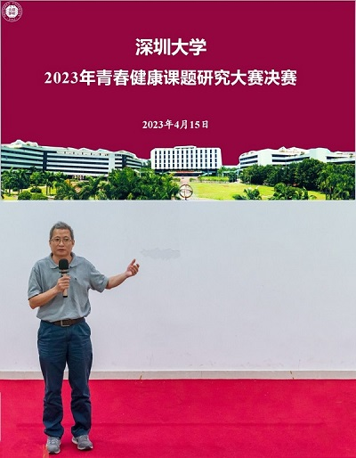 2023年4月15日晚上六点半,由深圳大学青春健康俱乐部和南山区计划生育协会共同主办的2023年深圳大学青春健康课题研究大赛(下称大赛)决赛暨成果报告会,在学生活动中心一楼报告厅如期举行。由张革华教授任组长的评审小组五位评委老师,进入本次决赛的10组队伍、现场观摩的同学和校“心协”(同伴教育社)成员一同参加了活动。
