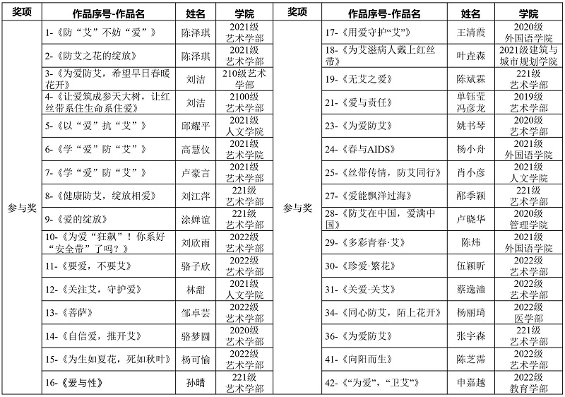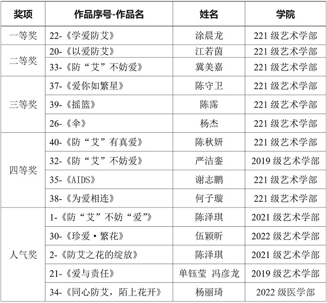 深圳大学“防艾”宣传海报衍纸作品设计大赛获奖名单