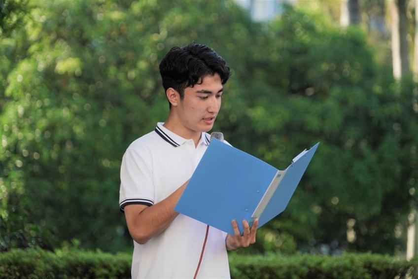 最后,2022级民族预科班伊力提日什·艾合麦提同学作为青年学生代表发言。伊力提日什同学说,作为一名新时代青年,面对着各种复杂多样的问题,需要勇于担当和作为,要苦练意志,磨练本领,遇见困难不退缩,要永葆一颗志存高远的“雄心”。我们这一代人,生逢盛世,重任在身,于人生定向之时,当立鸿鹄之志,让青春之花绽放在祖国最需要的地方,在实现中华民族伟大复兴的接力跑中,跑出我们的精彩!