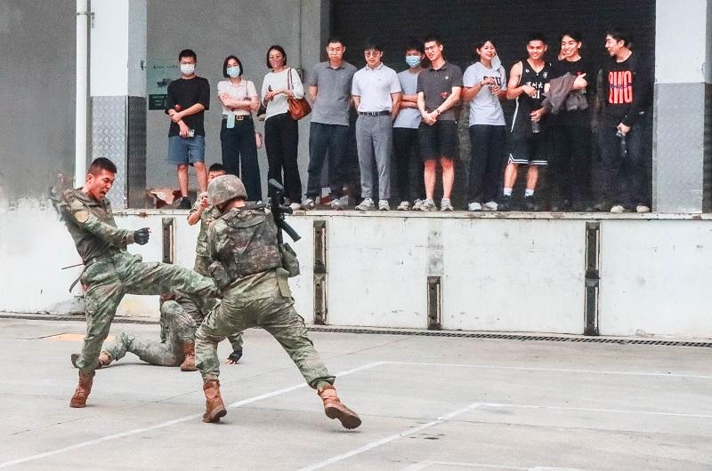 随着国防和军队改革的加速推进,各式新装备陆续列装,部队的面貌焕然一新。今天,我校师生走进军营,通过情况介绍片看到了驻港部队的辉煌历史,领略到了“威武之师、文明之师、胜利之师”的精神风貌。官兵们展示的刺杀操,铿锵有力、动作灵活;驾驶专业技能,操控娴熟、快速精准;特情处置,反应迅速、擒拿有力;轻武器分解结合,动作流畅、昼夜可行;手榴弹投掷,安全可靠、精准有度,赢得了师生们的阵阵掌声。演示完毕,在官兵们的指引下,师生们登上战车观摩,体验轻武器操作、手榴弹投掷和单兵装备穿戴,走进官兵宿舍学习内务整理技巧,为师生们缤纷多彩的校园生活增添了一抹军营的火红。