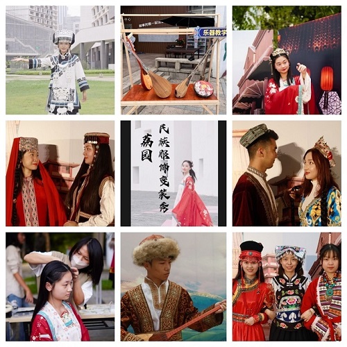 学生通过展示和体验,去感受和发现不同民族之美。通过拍摄“荔园民族服饰变装秀”短视频,展现出各民族绚丽多彩的传统服饰和积极向上的精神面貌。有近200人通过线上和线下预约试穿和拍摄,留下了美好的回忆。民族乐器的现场演奏和讲解,以及趣味知识问答增进了同学们对各民族文化的进一步了解。
