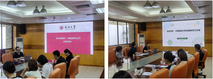 2023年11月2日上午,“同心同向同行”少数民族学生工作分享交流会在汇典楼二楼会议室举办,少数民族学生工作办公室及学院10余名辅导员参加沙龙。