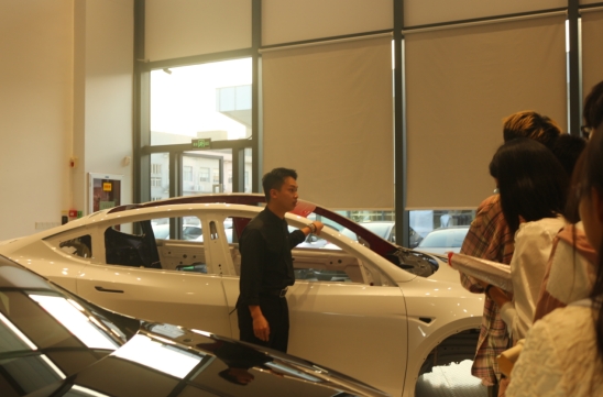 参访活动包括企业代表宣讲介绍、参观汽车安普骨架、观看炫舞灯光秀、探秘车辆结构、智能试驾体验、分享交流会等环节,同学们感受到了特斯拉中国欢迎新人的热情以及企业轻松、团结、向上的氛围。