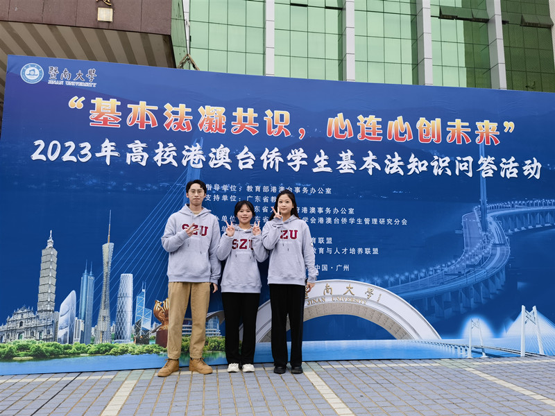 2023年高校港澳台侨学生基本法知识问答活动于12月18日在暨南大学成功举办,深大代表队荣获二等奖。2023年高校港澳台侨学生基本法知识问答活动于12月正式开启,在线上问答活动中,深大学子积极参与,经过激烈比拼,最终从全国近50所高校中脱颖而出,成功晋级基本法“校园行”线下知识问答比拼!