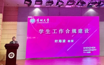 为了落实学校合规建设年部署,强化学生工作合规建设,深圳大学学生部于2024年3月7日在汇星楼一号报告厅举办“学生工作合规建设”主题讲座。讲座由深圳大学法学院副院长、深圳大学合规研究院执行院长叶海波教授主讲。党委学生工作部副部长宋敏老师及全体辅导员参加本次讲座。