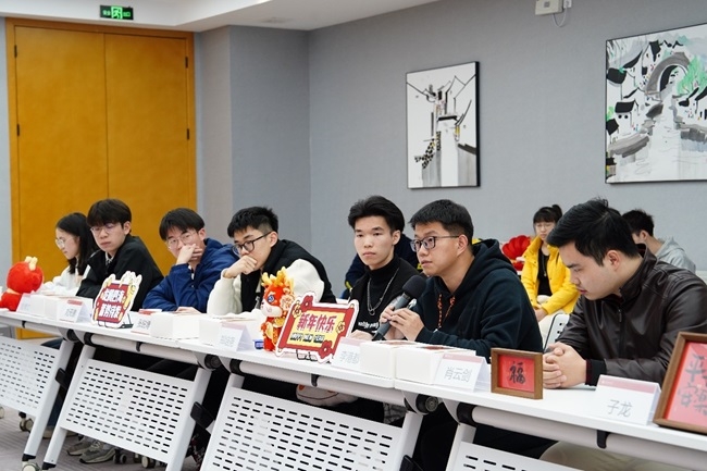 值班辅导员及楼长同学们提前将紫薇斋106、守正楼A213装点一新,会场一派节日喜庆氛围。与会老师、同学喜气洋洋,会场气氛热烈。副校长张学记、汪永成首先向大家总结了学校过去一年的发展与成果,并对同学们致以新春问候。随后,参会老师、同学依次作自我介绍,同学们谈到了留校的缘由和近期在校的学习生活情况,老师们询问同学们在校学习、生活上的困难。大家相互关心、互致祝福,会场气氛喜庆、热烈。最后张学记、汪永成副校长为本次新春茶话会做了总结,并为同学们发放了新春红包,表示学校会持续关注好留校学生的生活状况,寄语同学们始终秉持“自立、自律、自强”的校训精神,做好假期规划,劳逸结合,祝愿同学们享受荔园生活,欢欢喜喜过大年。