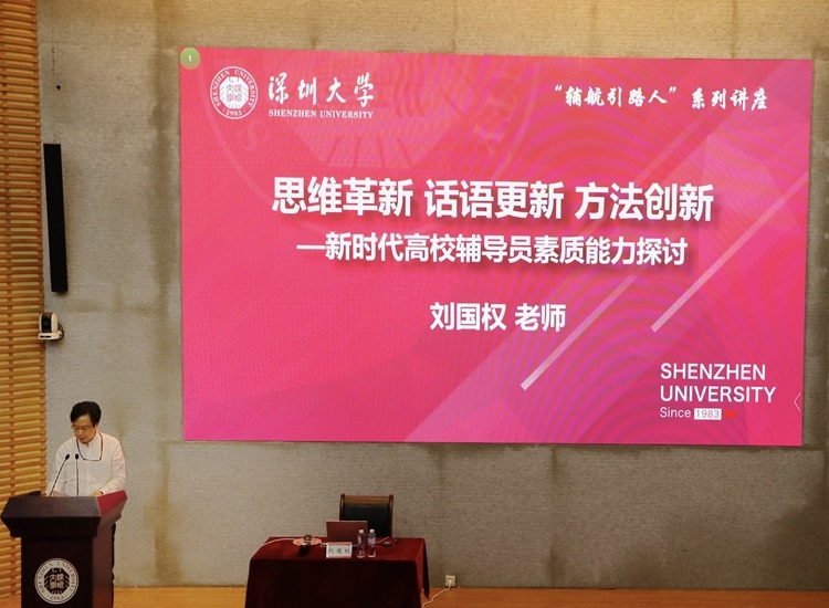 为加强高校辅导员素质能力,创新辅导员工作思路和方法,深圳大学学生部于2024年3月27日在汇星楼二号报告厅举办“辅航引路人”系列讲座第一讲:思维革新、话语更新、方法创新——新时代高校辅导员素质能力探讨。讲座由哈尔滨师范大学副研究员、哈尔滨师范大学融媒体中心主任刘国权老师主讲。学生部陈云飞部长及全体辅导员参加了本次讲座。