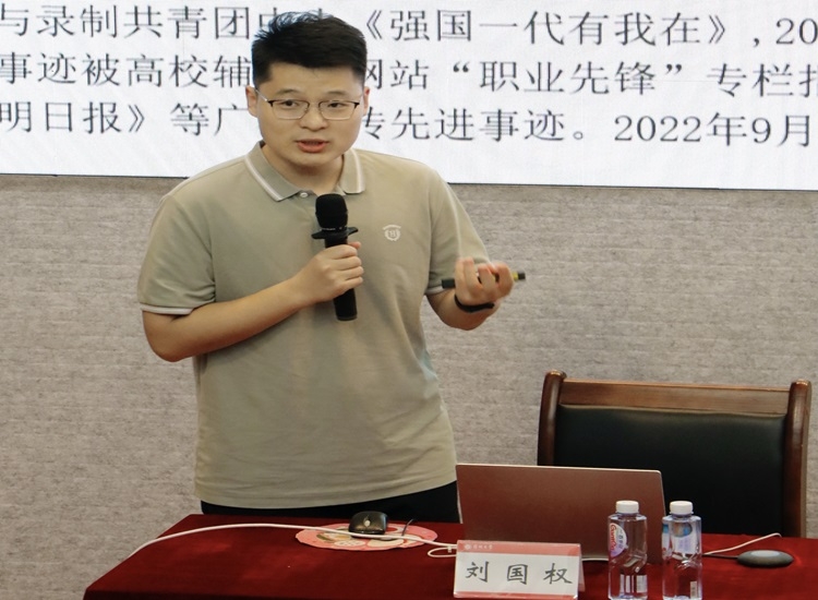 刘国权老师首先对辅导员工作面临的挑战与机遇作了叙述,他指出,新时代高校辅导员拥有前所未有的机遇与机缘,不仅辅导员群体越来越受重视,同时也有单独针对辅导员的各类课题申请和评优比赛,深刻阐明了高校辅导员的重要性、独特性、必要性;其次,刘国权老师从思维革新、话语更新、方法创新三个方面切入,对如何应对挑战与抓住机遇进行详细解析,提出切实可行的方法路径;最后,刘国权老师以自己为案例,阐述了个人十一年以来在辅导员事业上取得的工作成果,并对过程中行之有效的创新方法作了无私分享,激励了辅导员的工作热情。