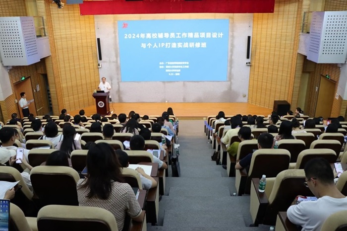 为加强和改进高校思想政治工作,推动高校辅导员队伍向职业化、专业化发展,深圳大学学生部于2024年5月23日至25日在汇星楼二号报告厅举办了“高校辅导员工作精品项目设计与个人IP打造实战研修班”。此次研修班由广东省教师继续教育学会主办,深圳大学学生部协办,邀请了来自6个省25所高校的90多位辅导员共同参与。研修班开班仪式由广东省教师继续教育学会副秘书长、华南师范大学教授王鹏主持,深圳大学党委学生工作部部长、学生部主任陈云飞,以及广东省教师继续教育学会会长、华南师范大学陈岸涛教授、等领导嘉宾出席并致辞。