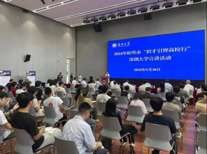5月30日,蚌埠市“2024年招才引智高校行”活动在我校粤海校区校友广场二楼多功能厅成功举办。蚌埠市委书记黄晓武、深圳大学副校长张学记莅临现场。
