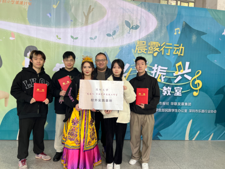 “艺家人”民族艺术交流工作室以各民族学生艺术特长为切入点,通过设立艺术类公益课堂、组织社会公益活动等方式促进各民族学生广泛交往交流交融,助力我校铸牢中华民族共同体意识教育工作。工作室2023年12月加入南方都市报主办的“乡村振兴音乐教室”建设计划,并在龙胜镇小学挂牌成立校外社会实践基地。