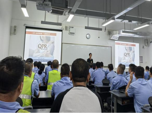 讲座伊始,徐诚革副主任强调学校安保工作是学校学生工作的重要部分,倡议所有工作人员善心善行,敬畏生命。在讲座中,刘玎老师结合案例就如何通过直接和间接线索识别危机,以及识别危机后的四个重要工作进行详细的讲授和分享;特别就危机预防的“心肺复苏术”QPR进行了讲解,并邀请安保同事们进行角色扮演练习。讲座最后刘老师呼吁,所有工作人员要关爱学生,敬畏生命,为学生的生命保驾护航,携手共做“生命守门人”。