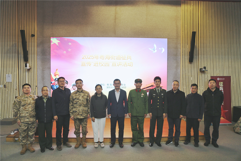 1月13日下午,深圳大学武装部联合粤海街道武装部在我校汇星楼三号报告厅举办2025年春季征兵宣讲暨退役老兵分享会。南山区武装部部长仲子斌、深圳大学学生部副主任王淑一、粤海街道武装部部长黎拥华、征兵工作人员以及应征青年代表共计百余人出席了本次活动。 活动特别邀请到了二等战功越战老兵李奕军、军校学员刘宇琪和优秀退役士兵王锐可,他们以个人亲身经历为现场的应征青年们带来了一场生动且震撼的军旅故事分享会。越战老兵李奕军讲述了战火纷飞年代的英勇事迹,以及那段经历如何塑造了他坚韧不拔的人生态度;军校学员刘宇琪分享了如何踏入军营,经过艰苦的训练和勤奋学习考入军校,展现了军队对个人成长的全方位培养;优秀退役士兵王锐可则畅谈了军旅生涯对自己性格和能力的磨砺,从初入军营的青涩到退役时的坚毅成熟,他的蜕变让同学们深受触动。三位嘉宾用自己的真实故事,点燃了在场青年们对军旅生活的向往,激发他们踊跃报名参军热情。嘉宾分享结束后,武装部工作人员详细讲解了参军入伍的基本要求、流程及相关政策,涵盖年龄限制、体格检查、政治考核等方面,并对大学生入伍的经济和政策保障做了重点解读,包括一次性奖励金、家庭优抚金、退役补助金、考公考编考研政策等。华创科技创新中心黄伟主任就退役后的就业创业及各类保障政策进行了全面而深入的讲解。