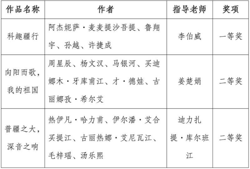 近日,广东省教育厅公布了2024年“爱在广东”民族团结进步教育活动的结果。我校三个作品分别荣获“相融广东”视频作品一、二等奖。其中,机电与控制工程学院的李伯威老师指导的“科趣疆行”荣获一等奖,艺术学部的姜楚娟老师指导的“向阳而歌,我的祖国”以及学生部的迪力扎提·库尔班江老师指导的“普疆之大,深音之响”荣获二等奖。