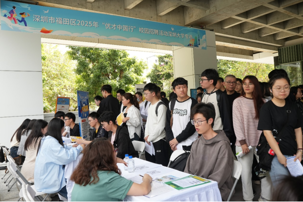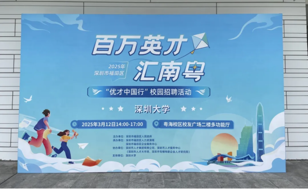 在积极响应中央、省、市关于促进高校毕业生就业的政策号召下,2025年3月12日,深圳市福田区“优才中国行”校园招聘活动启动仪式暨首场招聘会在我校校友广场率先拉开帷幕。福田区人民政府、深圳大学、深圳人才集团相关领导,以及 49 家企业代表和百名学生代表齐聚一堂,共同见证了这一重要时刻。