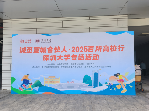 为深入贯彻人才强市战略,加强与高校合作,促进高校毕业生就业并引导毕业生到宣城就业,中共宣城市委、宣城市人民政府携手深圳大学共同举办了“诚觅宣城合伙人·2025百所高校行”深圳大学专场活动。本次活动于2025年3月8日在深圳大学粤海校区校友广场多功能厅成功举办。