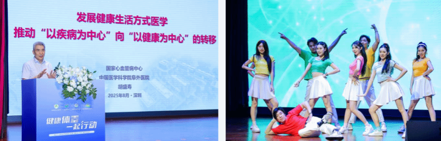 会上,中国医学科学院阜外医院院长、中国工程院院士胡盛寿做主题演讲,他强调,发展健康生活方式医学至关重要,需要用实际行动推动“以疾病为中心”向“以健康为中心”转移。接着,青春多彩的健康公益宣传环节拉开序幕,歌舞、脱口秀、健康操等精彩表演一次次把现场引至高潮,表演者用青春活力为“健康中国”“健康深圳”写下注脚。