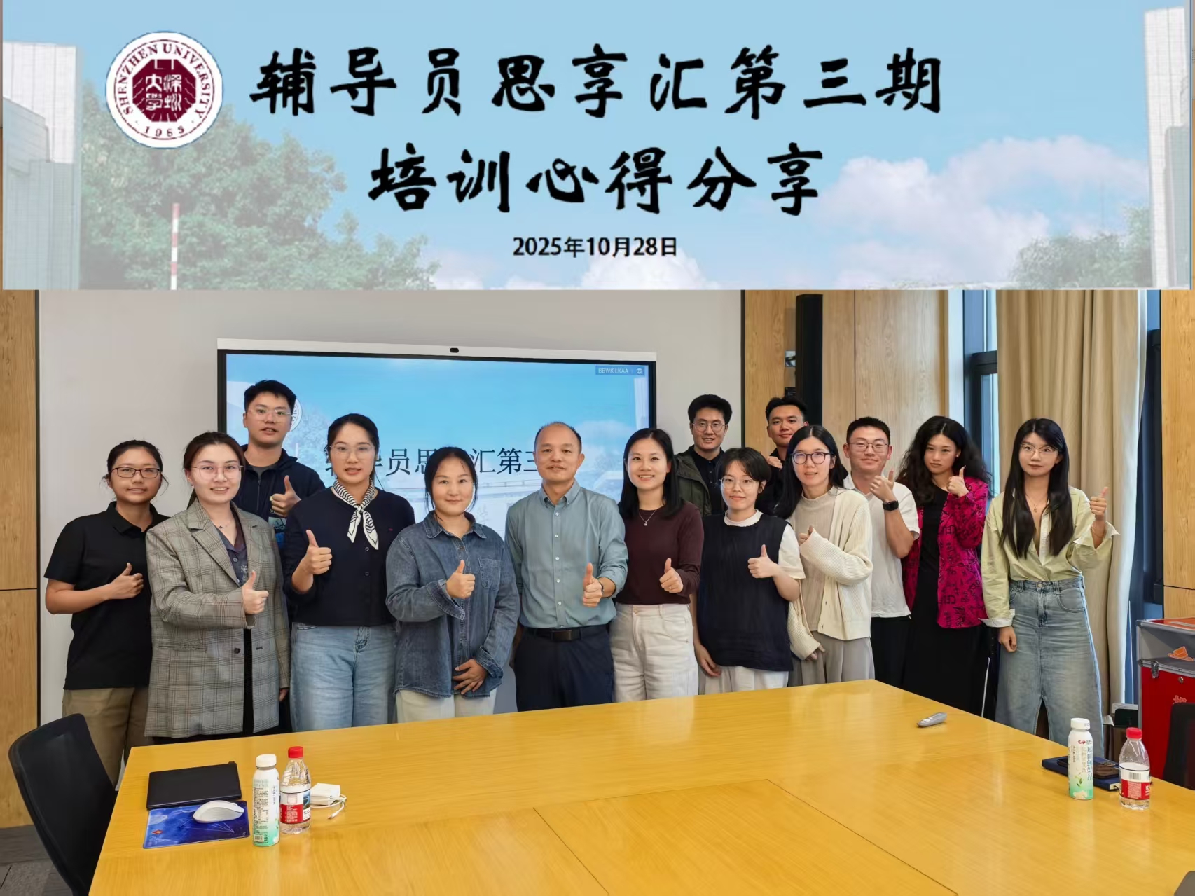 为持续推动辅导员队伍专业化、职业化发展,2025年10月28日,由深圳大学学生部主办,经济学院承办的辅导员思享汇第三期沙龙在丽湖校区明德楼1101会议室顺利举行。经济学院党委副书记张建华、管理学院谢杨慧老师、医学部洪子京老师、经济学院李沛燊老师等受邀作专题分享,来自广西桂林学院的两位辅导员老师及我校各学院的多名辅导员老师共同参与本次交流活动。