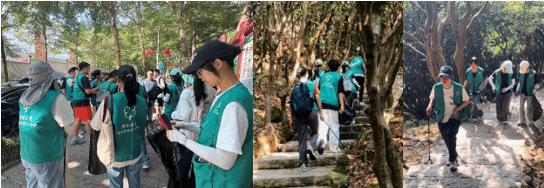 登山途中,志愿者们成为了山道上一道独特的风景。他们手持垃圾钳与环保袋,细心搜寻步道旁、树林间的废弃瓶罐、包装纸屑等垃圾。《孟子》有云:“仁民而爱物”,此次活动正是将此理念化为具体行动。每一次俯身拾捡,不仅是对山野环境的抚慰,更是对环保信念的坚实践行。