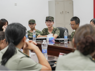 沧海学生社区管委会主任、逐光二团政委陈碧霞对各位同学的到来表示热烈欢迎,她向在场师生详细介绍了沧海学生社区的建设情况,并热情鼓励同学们畅所欲言,分享军训期间的难忘瞬间。