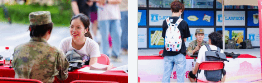 活动现场还设有征兵咨询摊位。退役学生志愿者在现场“坐班”,为有入伍意向的同学提供“一对一”咨询服务。从入伍条件、报名流程、优待政策,到军旅生活日常等,工作人员都进行了详细解答,并分享了自身军旅经历和心得体会。