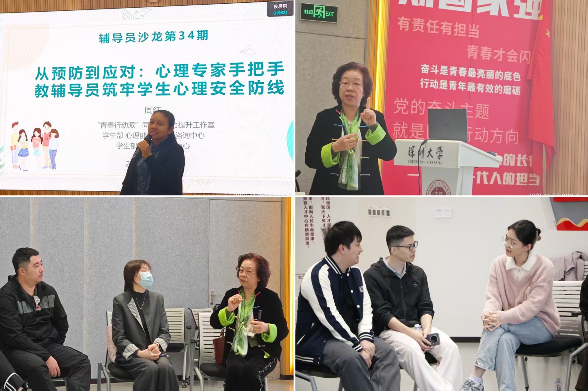 为深入贯彻落实立德树人根本任务,进一步加强我校学生心理健康教育工作,提升辅导员心理危机识别与干预能力,2025年11月27日上午,由学生部心理健康教育与咨询中心、辅导员发展中心联合“青春行动派”同伴支持力提升工作室共同主办的第34期辅导员沙龙在粤海校区紫薇斋106顺利举行。本期沙龙主题为“从预防到应对:心理专家手把手教辅导员筑牢学生心理安全防线”,特邀深圳大学原心理辅导中心主任周红副教授担任主讲。