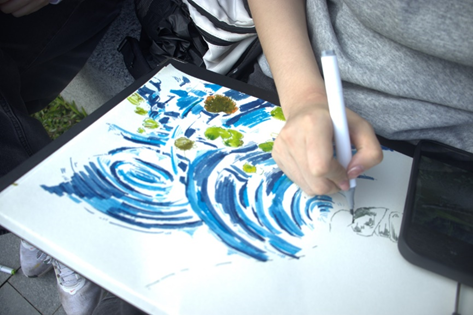 在室内指导环节结束后,同学们纷纷领取画材,走到秋光潋滟的文山湖畔,寻找自己心中的最美视角投入创作。大家以各自独特的视角捕捉景致,有的注重线条勾勒,有的专注光影变化,将眼前景色生动呈现于画纸之上。活动现场氛围轻松融洽,笔尖划过纸面的声音、低声的交流与偶尔的笑声交织在一起,展现出自然而生动的创作场景。