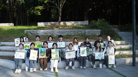带着完成的写生作品,同学们用画框进行装裱,最后的大合影为这次美育实践活动画下圆满句号。本次户外写生实践是社区美育活动的一次成功尝试,为大家搭建了感受自然、体验创作的平台,为文山湖社区后续活动的展开积累了经验。