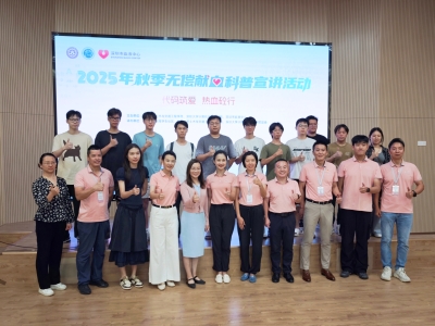 10月20日,科普宣讲讲座于深圳大学粤海校区南区致腾楼报告厅和致工楼A431隆重举办,主讲单位为深圳市红十字无偿献血宣讲团。讲师们以深入浅出的方式,精彩诠释无偿献血相关知识,并融入个人经历,鲜活展现每一滴热血如何化作他人生命的希望之光。现场氛围热烈高涨。