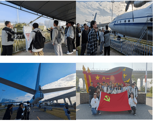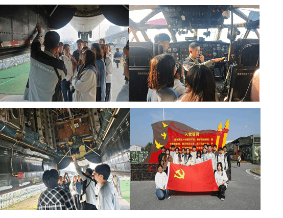 研学团登上轰-6轰炸机与运-8运输机,亲身体验国防装备的科技内涵。全体党员在机翼下庄严重温入党誓词,誓言铿锵,表达了不忘初心、接续奋斗的决心。通过场景化、互动式的学习,同学们在感受军事科技魅力的同时,进一步坚定了大家不忘初心、牢记使命的政治信念。