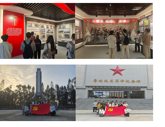 研学团首先来到粤桂边区革命纪念馆。在讲解与自主参观中,同学们通过丰富的文物史料与图文展陈,系统学习了粤桂边区从土地革命到解放战争时期的奋斗历程。大家在烈士纪念碑前肃立默哀,深切缅怀革命先辈的丰功伟绩,在历史回望中进一步坚定了理想信念与责任担当。