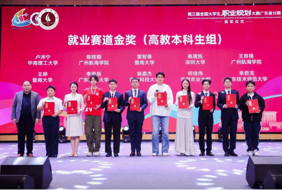 2026年1月31日,第三届全国大学生职业规划大赛广东省分赛圆满落幕。赛事历经校赛遴选、省复赛网络评审、省决赛现场比拼等多轮严苛角逐,众多优秀选手脱颖而出。我校学子凭借清晰的职业规划思路、扎实的专业能力储备、出色的现场展示表现,在大赛中斩获多项荣誉,充分彰显了我校生涯教育与就业指导工作的扎实成效和深大学子的优秀职业发展素养!